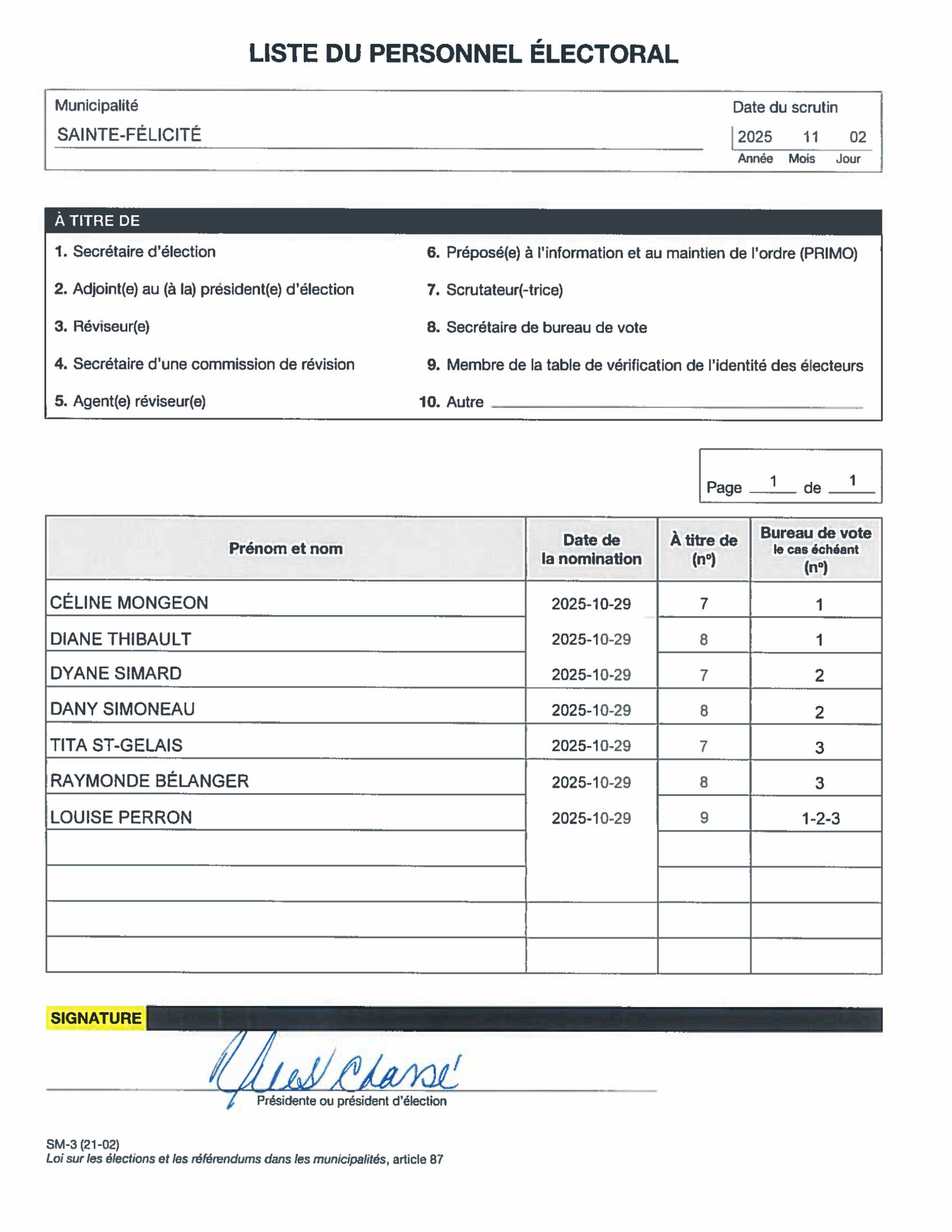 Liste du personnel électoral