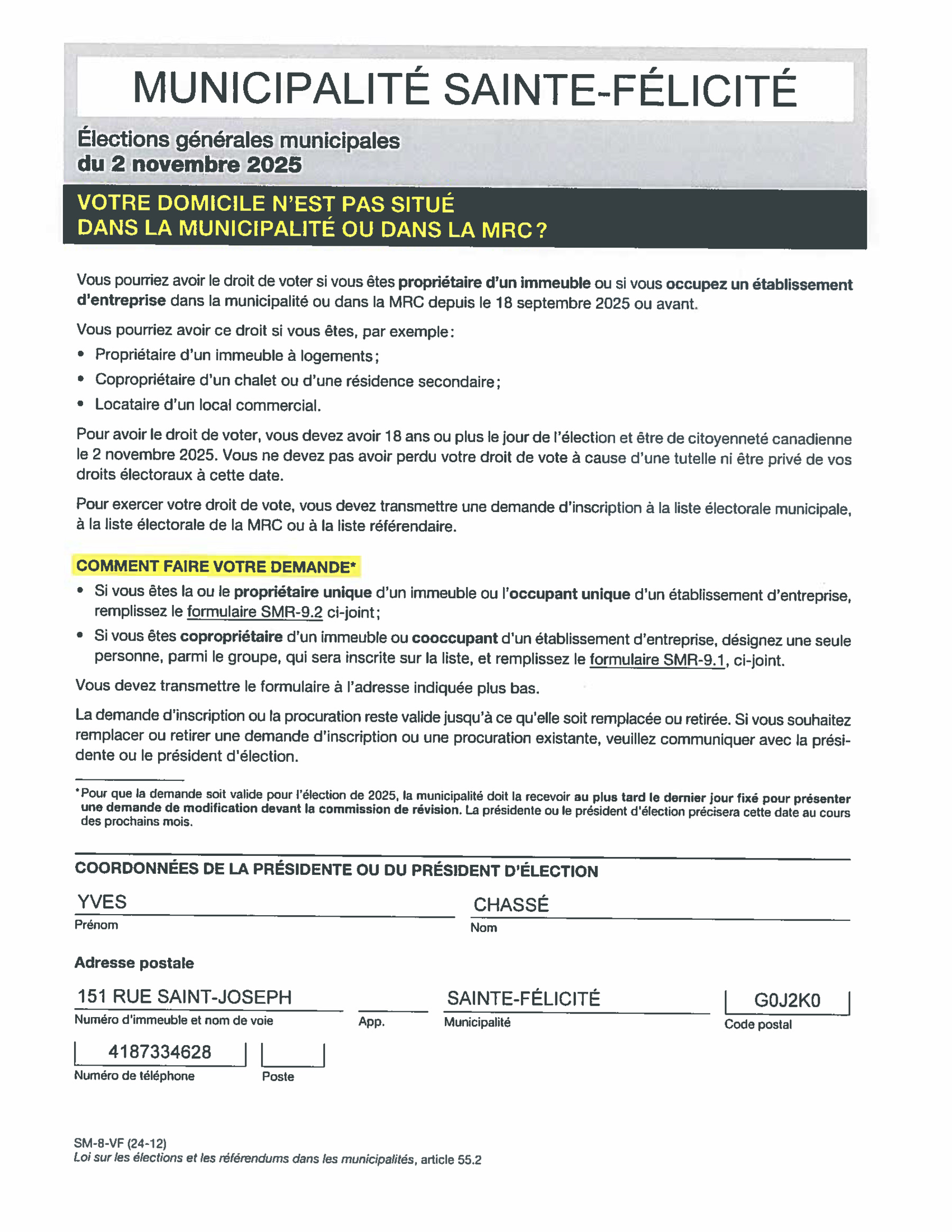 Avis public aux électeurs non domiciliés